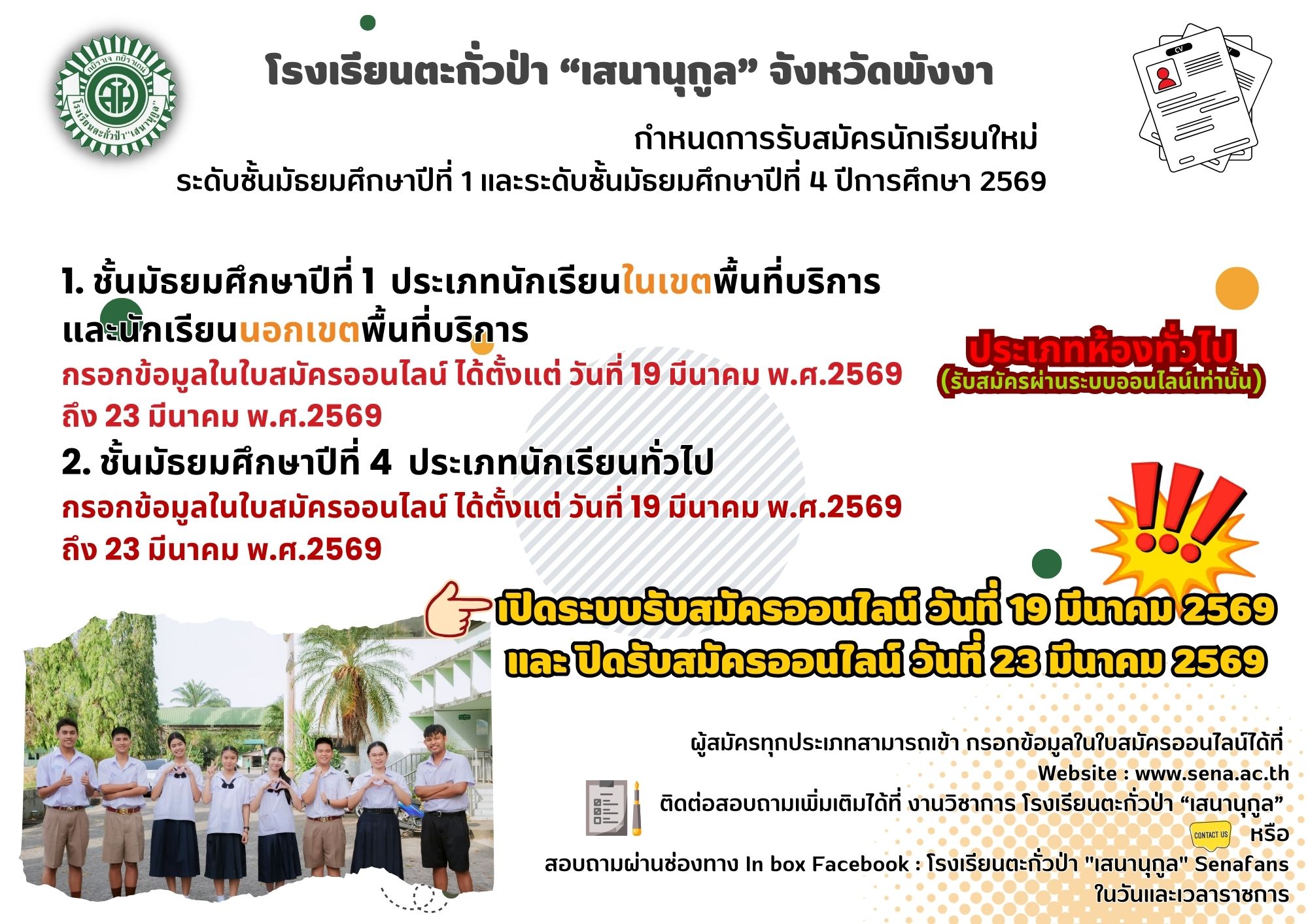 เข้าเรียนระดับชั้นมัธยมศึกษาปีที่ 1 และ ชั้นมัธยมศึกษาปีที่ 4